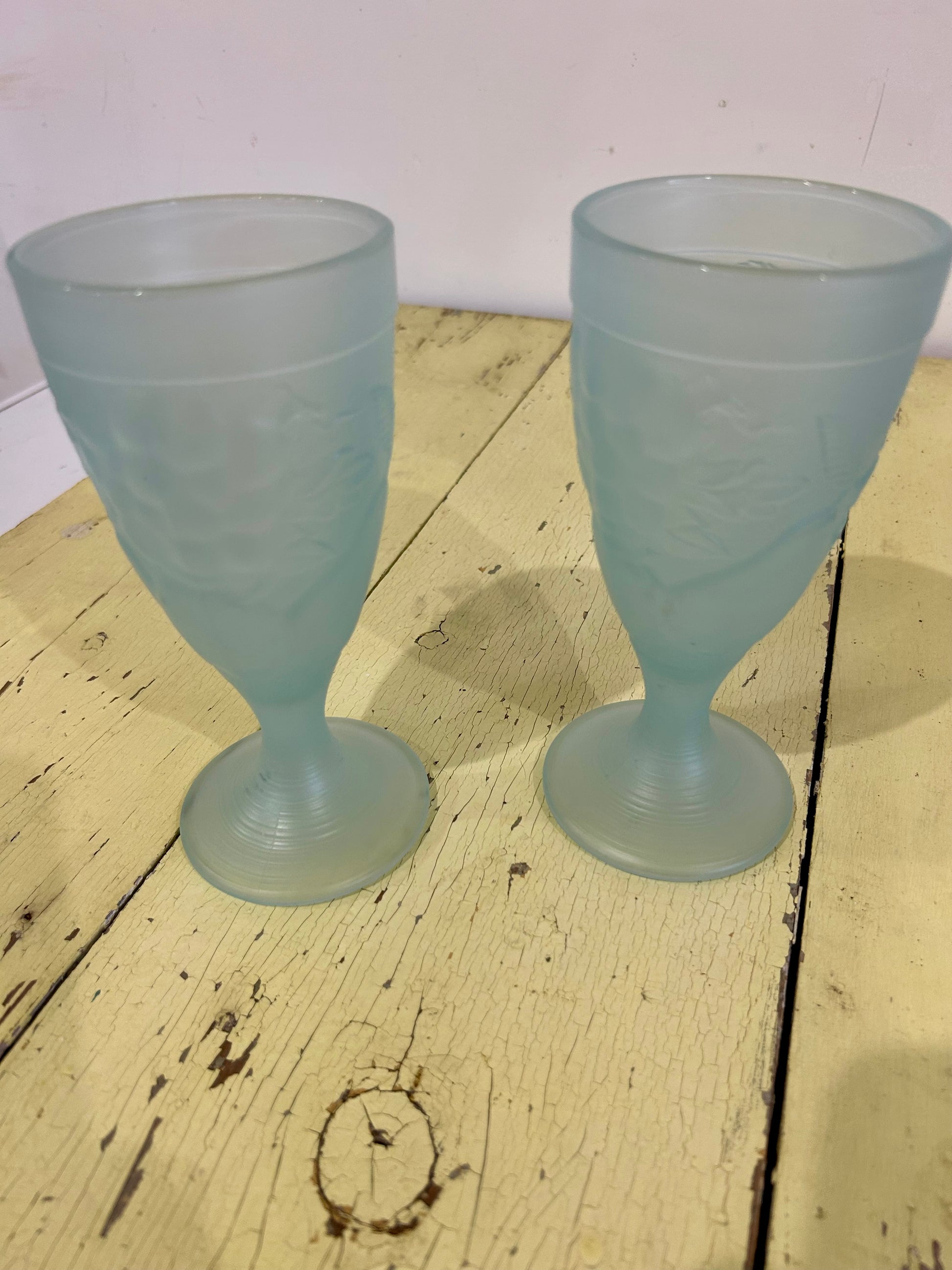 2 light blue goblets made in France