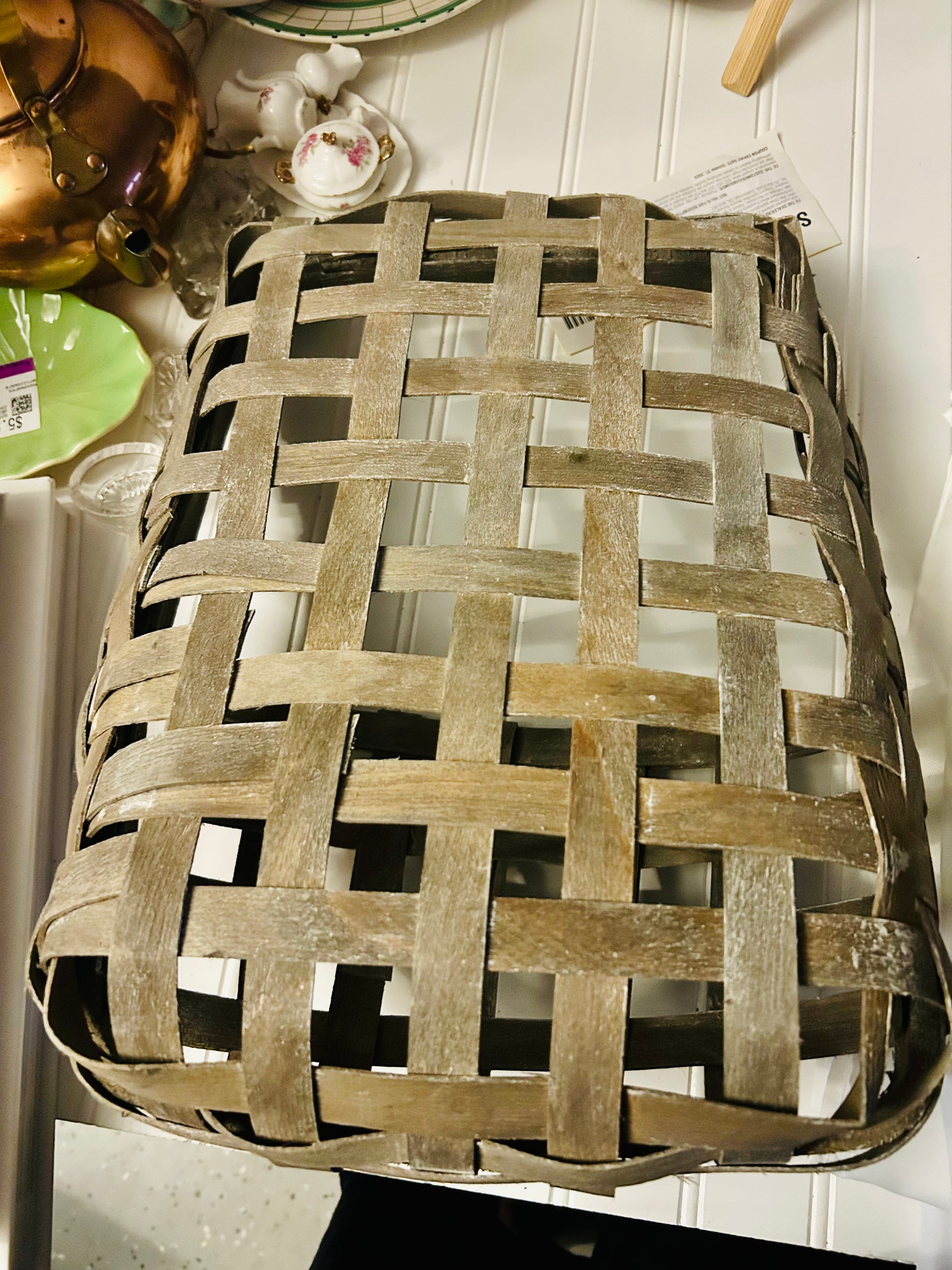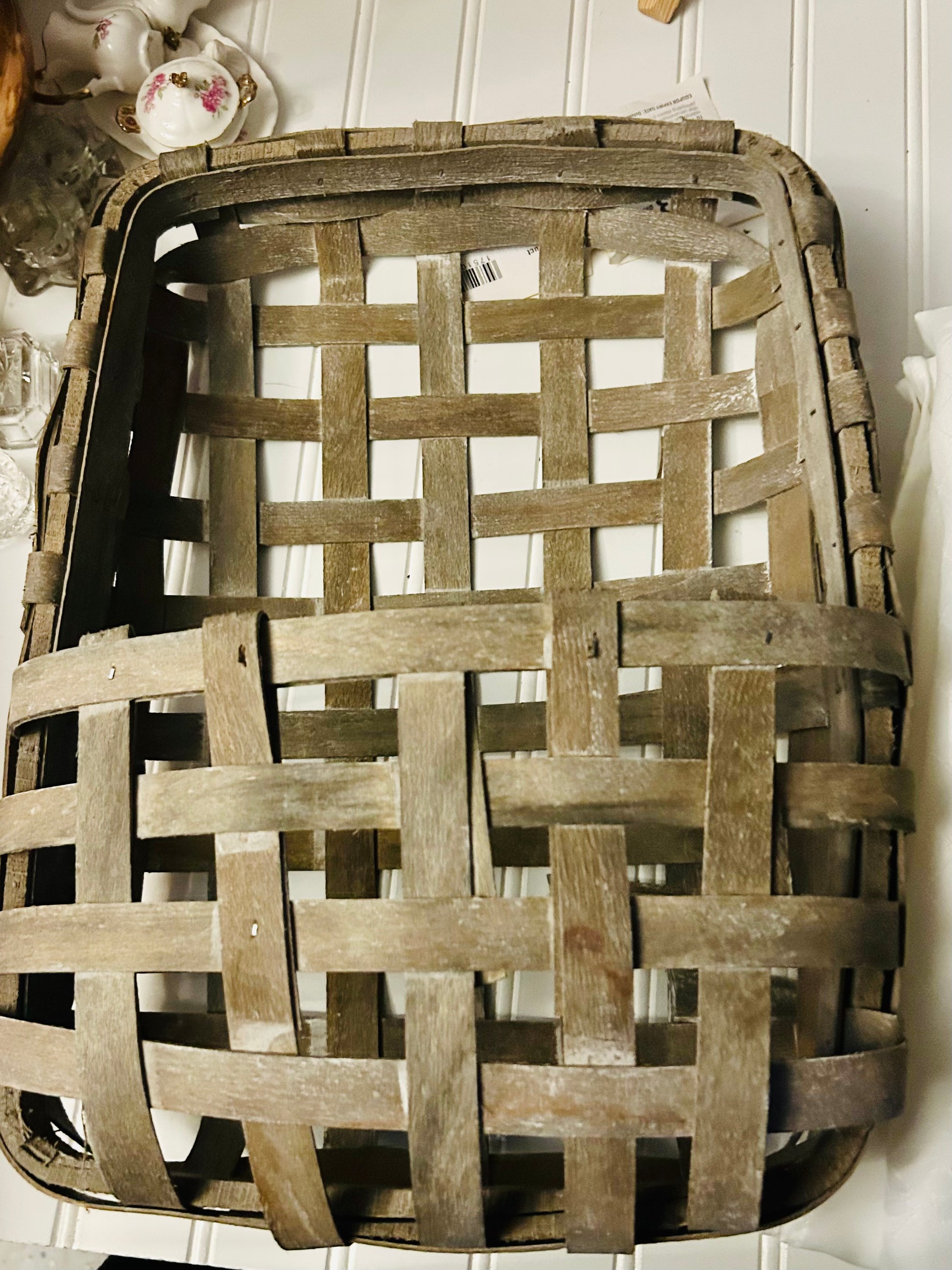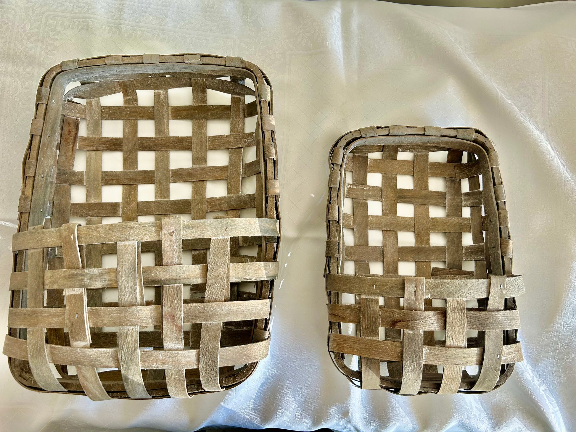 Cannot authenticate if vintage but very vintage like. Large basket is 16" X 12" , smaller basket 12" X 9". Well constructed but delicate.